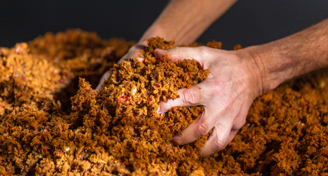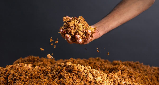 Vi kan efterhånden producere en m2 LEAP fra blot to kg æblepulp. Vi har gennemført vores udviklingsproces skridt for skridt og har selvfølgelig løbende forfinet processen. Vi startede med at blande i en standard køkkenhåndmixer, men har nu udvidet til en industriversion, som kan blande 500 kg ad gangen. Men den er også snart for lille, siger han.