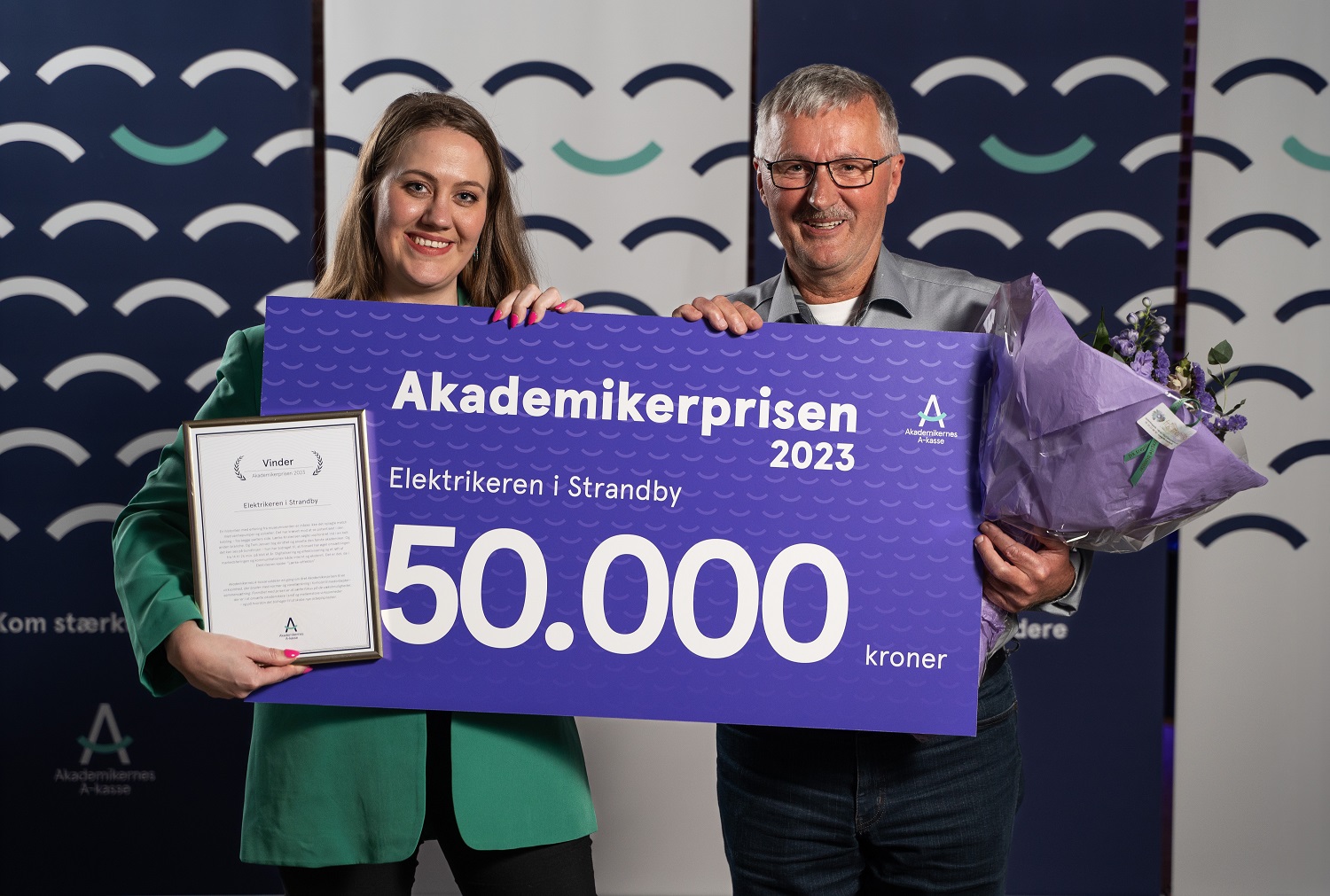 Elinstallatørfirma Elektrikeren i Strandby har netop fået overrakt årets Akademikerpris, som uddeles én gang om året af Akademikerens A-kasse. Prisen går til den nordjyske virksomhed, som med ansættelsen af en højtuddannet har skabt resultater.