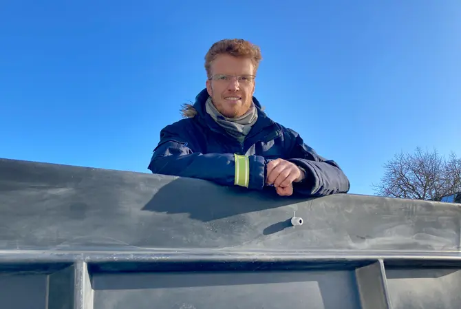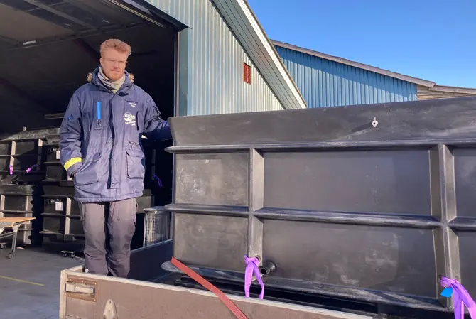 René Kilian står i et 4 kvm. stort kar på en trailer, der skal fragtes til Samsø. Det er et renseanlæg til en husstand på fem personer – til afløbsvandet fra toilet, brus, køkken og vaskemaskine. "Vi sælger godt 100 af de her spildevandskar om året. De renser spildevand fra det åbne land, hvor der ikke er kloakering. Jeg synes jo, det er helt forkert at kalde det spildevand, jeg vil hellere kalde det for ressourcevand,” forklarer René, der er direktør i virksomheden Kilian Water.