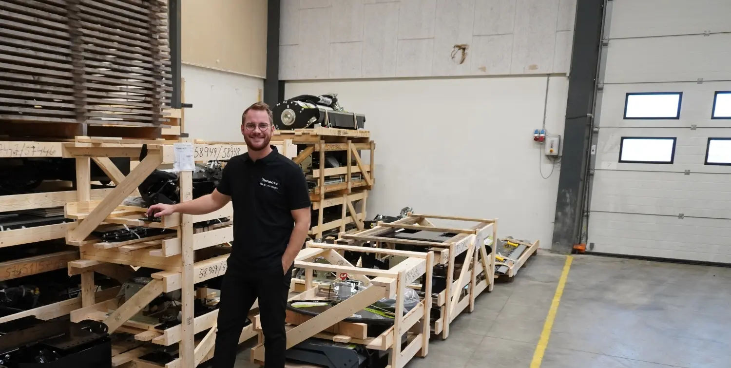GreenTec har specialfremstillet mere effektiv emballage af FSC certificeret træ, som betyder, at de i dag kan pakke 90 maskiner i en container mod tidligere 60.
