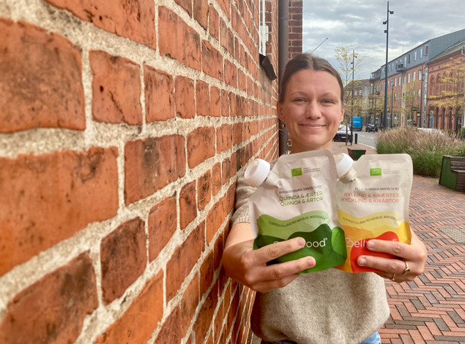 Hun fik hjælp af virksomhedsprogrammet SMV:Grøn, der er støttet af Danmarks Erhvervsfremmebestyrelse og EU’s REACT-midler. Støtten var med til at udvikle et vegansk måltid med quinoa og ærter, samt et klimavenligt måltid med kylling og kikærter.