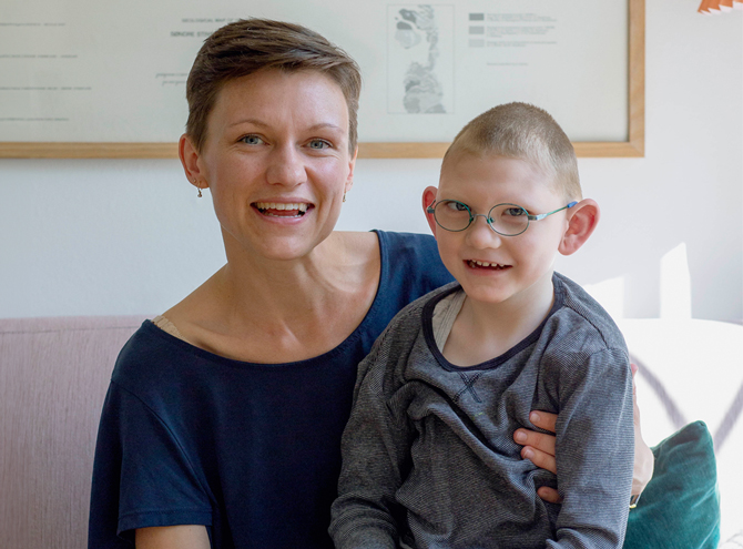 Lines søn Otto er er hjerneskadet og får alle måltider gennem en sonde i maven. Han trives ikke med den konventionelle sondemad på markedet, og Line ledte efter et alternativ. Foto: Privatfoto